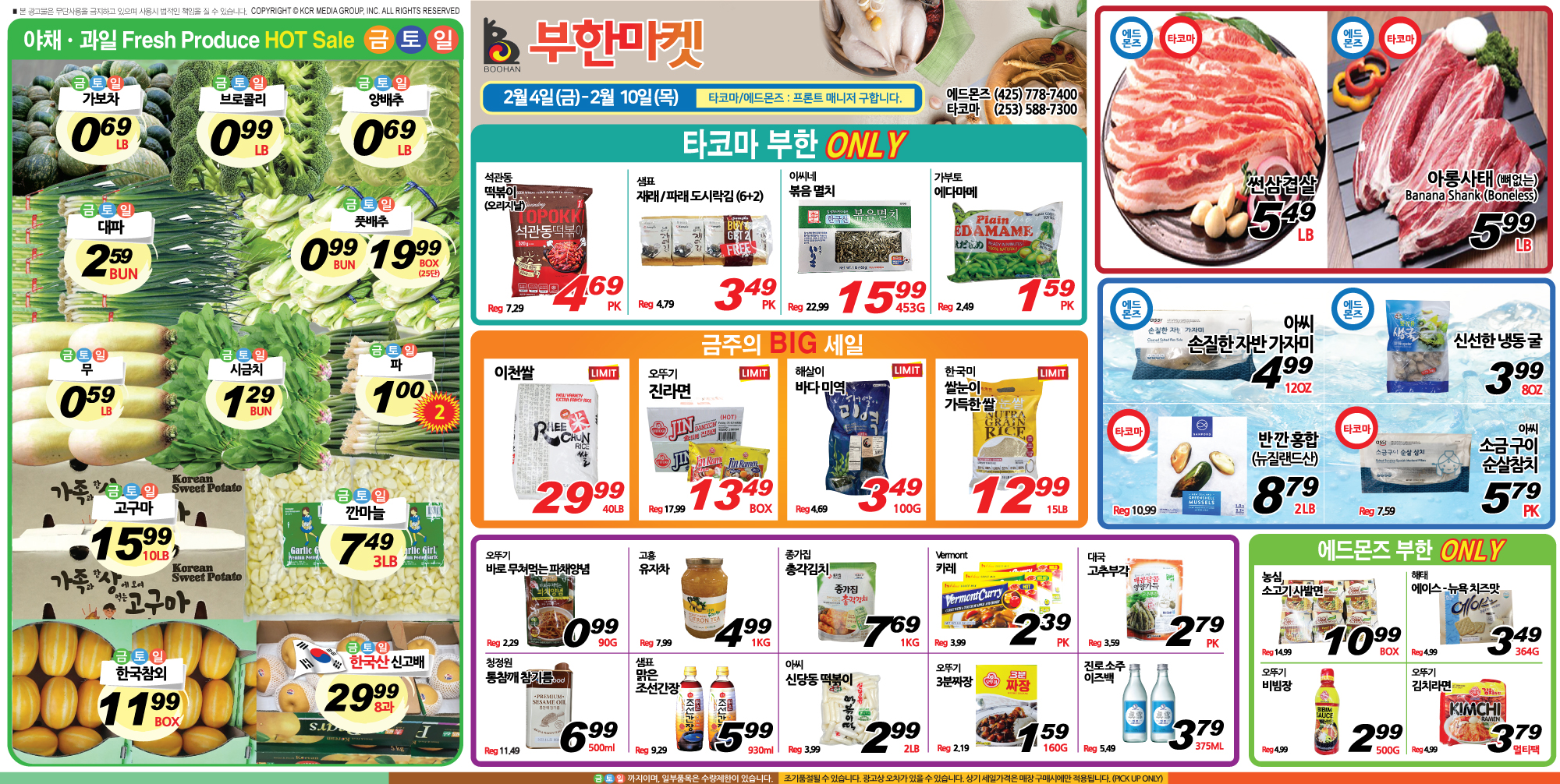 Post navigation 워싱턴주 타코마 부한마켓 | 2021년 1월 28일 (금) – 2월 3일 (목) 워싱턴주 타코마 부한마켓 | 2021년 2월 11일 (금) – 2월 17일 (목)
