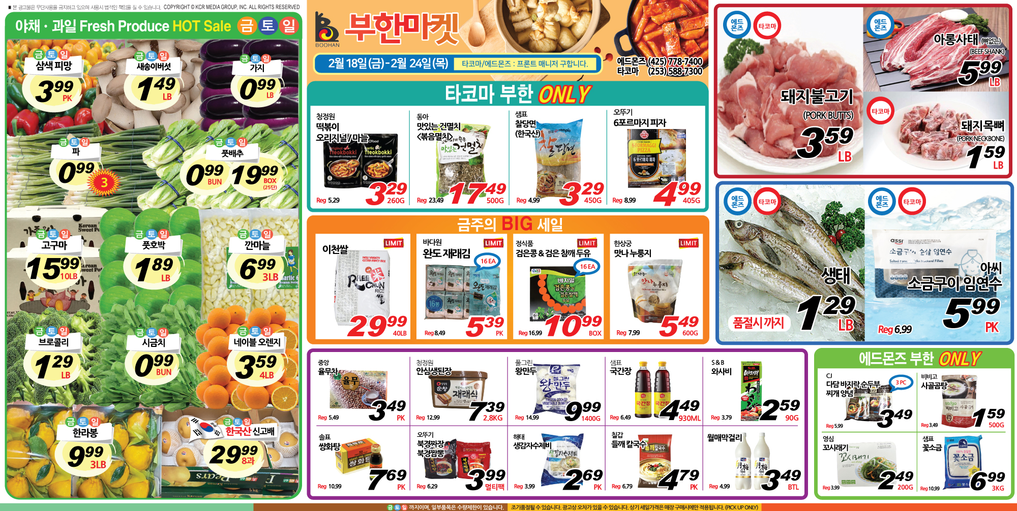 Post navigation 워싱턴주 타코마 부한마켓 | 2021년 2월 11일 (금) – 2월 17일 (목) 워싱턴주 타코마 부한마켓 | 2021년 2월 25일 (금) – 3월 3일 (목)