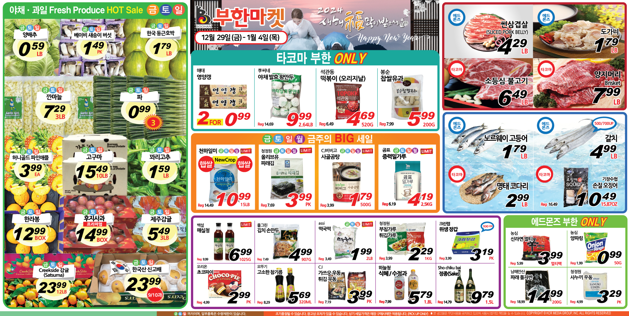 Post navigation 워싱턴주 타코마 부한마켓 | 2023년 12월 22일 (금) – 12월 28일 (목) 워싱턴주 타코마 부한마켓 | 2024년 1월 5일 (금) – 1월 11일 (목)
