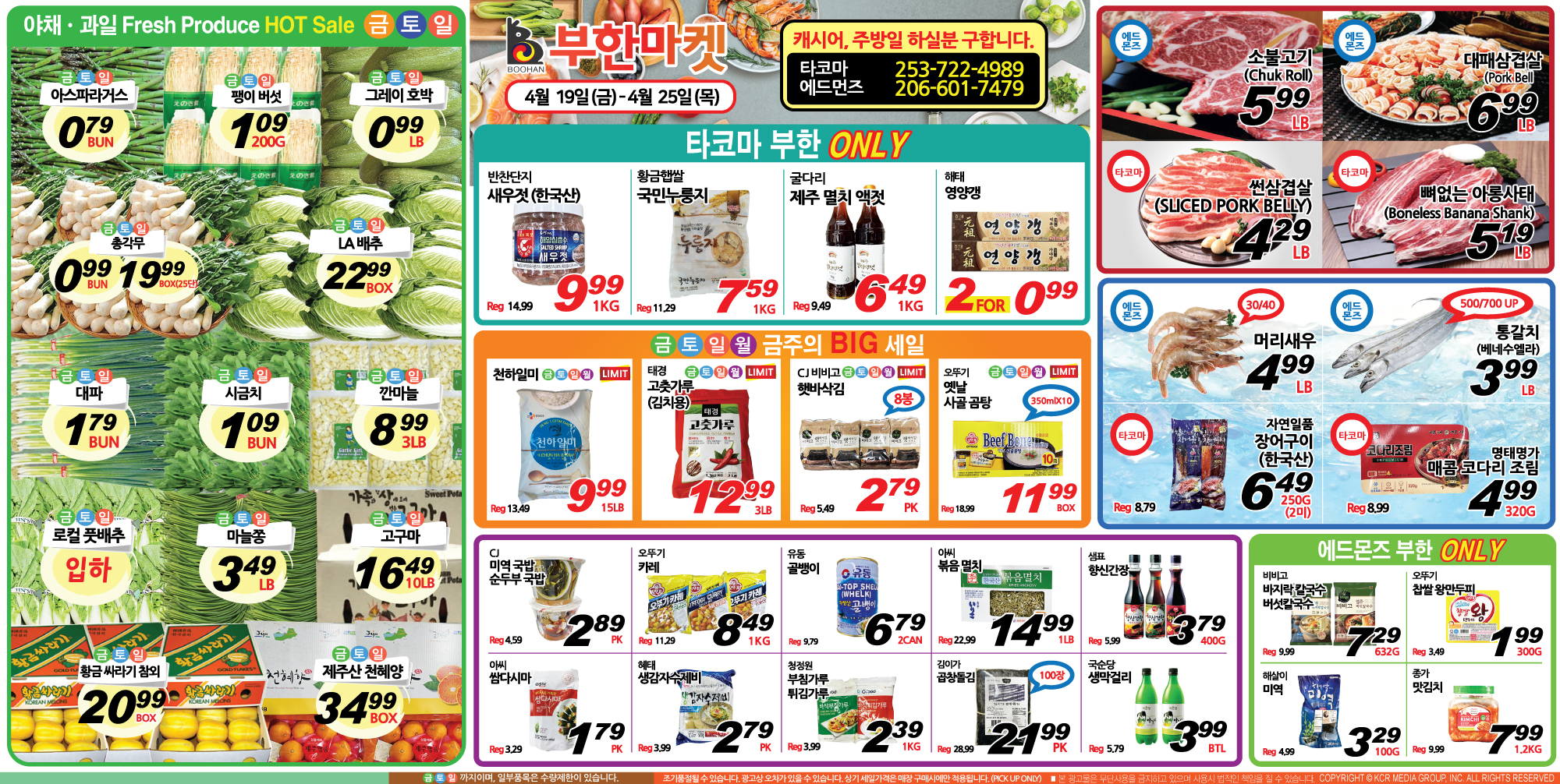 Post navigation 워싱턴주 타코마 부한마켓 | 2024년 4월 12일 (금) – 4월 18일 (목) 워싱턴주 타코마 부한마켓 | 2024년 4월 26일 (금) – 5월 2일 (목)