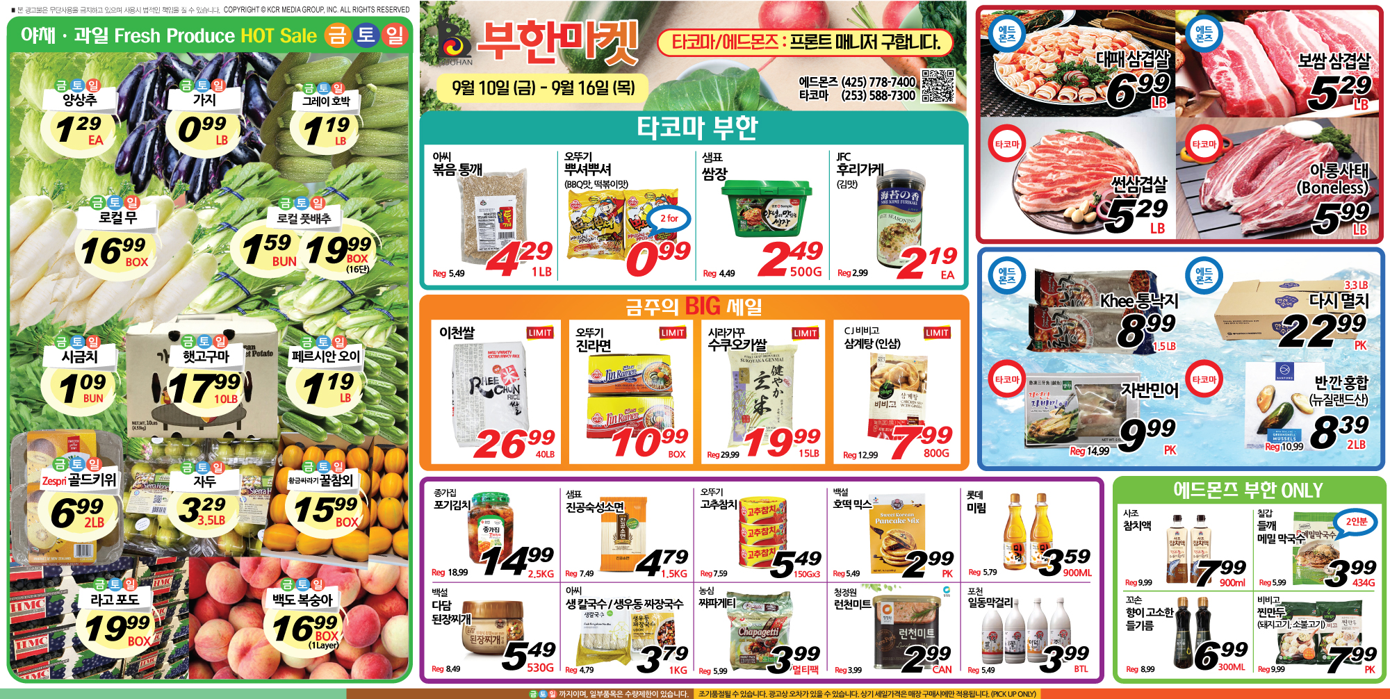 Post navigation 워싱턴주 타코마 부한마켓 | 2021년 9월 3일 (금) – 9월 9일 (목) 워싱턴주 타코마 부한마켓 | 2021년 9월 17일 (금) – 9월 23일 (목)