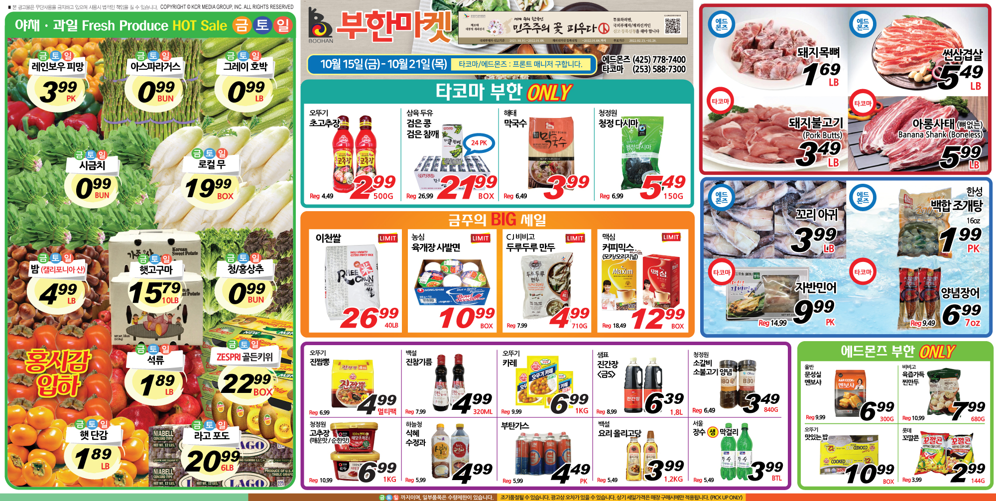Post navigation 워싱턴주 타코마 부한마켓 | 2021년 10월 8일 (금) – 10월 14일 (목) 워싱턴주 타코마 부한마켓 | 2021년 10월 22일 (금) – 10월 28일 (목)