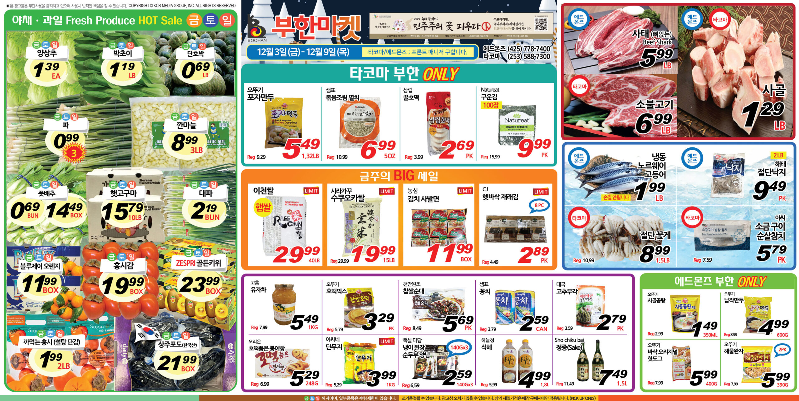 Post navigation 워싱턴주 타코마 부한마켓 | 2021년 11월 26일 (금) – 12월 1일 (목) 워싱턴주 타코마 부한마켓 | 2021년 12월 10일 (금) – 12월 16일 (목)